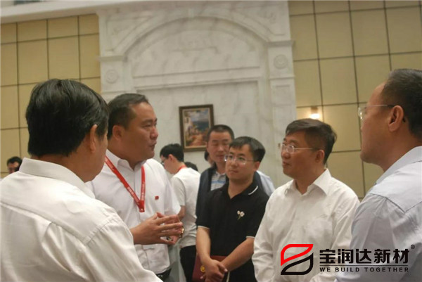 龔立群詳細詢問了寶潤達各個產品的性能優勢以及市場應用情況,尤其在了解到寶潤達外墻保溫一體板在保溫節能、節約成本等方面的突出表現時,大力贊揚。