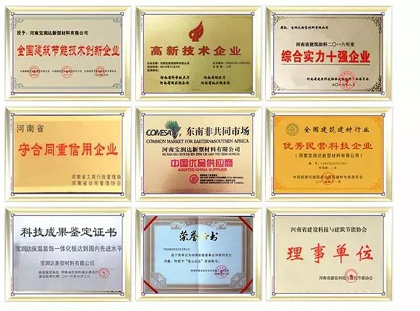 源于對環保的理解以及相應國家綠色節能政策,寶潤達自成立以來始終注重科技研發與創新工作,憑借“國家高新技術企業” “河南省省級企業技術中心”自身優勢,不斷加大科研投入,寶潤達先后獲得“一種聚氨酯復合板材甩膠裝置”“一種聚氨酯復合板材殘渣收集裝置 ”“一種新型鋼筋桁架板 ”“一種帶狀卷料輸送速度控制系統”“沉降式自動板材烘干室”、“仿石材一體保溫板”、“180度轉板涂裝輸送系統”……等實用新型專利。寶潤達積極探索產品成長趨勢,促進行業良好的發展態勢,助推節能建材行業進入全新時 。