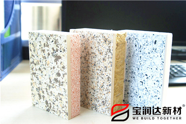 寶潤達(dá)一體板飾面層采用真石漆,多彩漆,水包水,水包砂,乳膠漆,實色/金屬氟碳超3000種顏色定制,可根據(jù)石材定做樣品